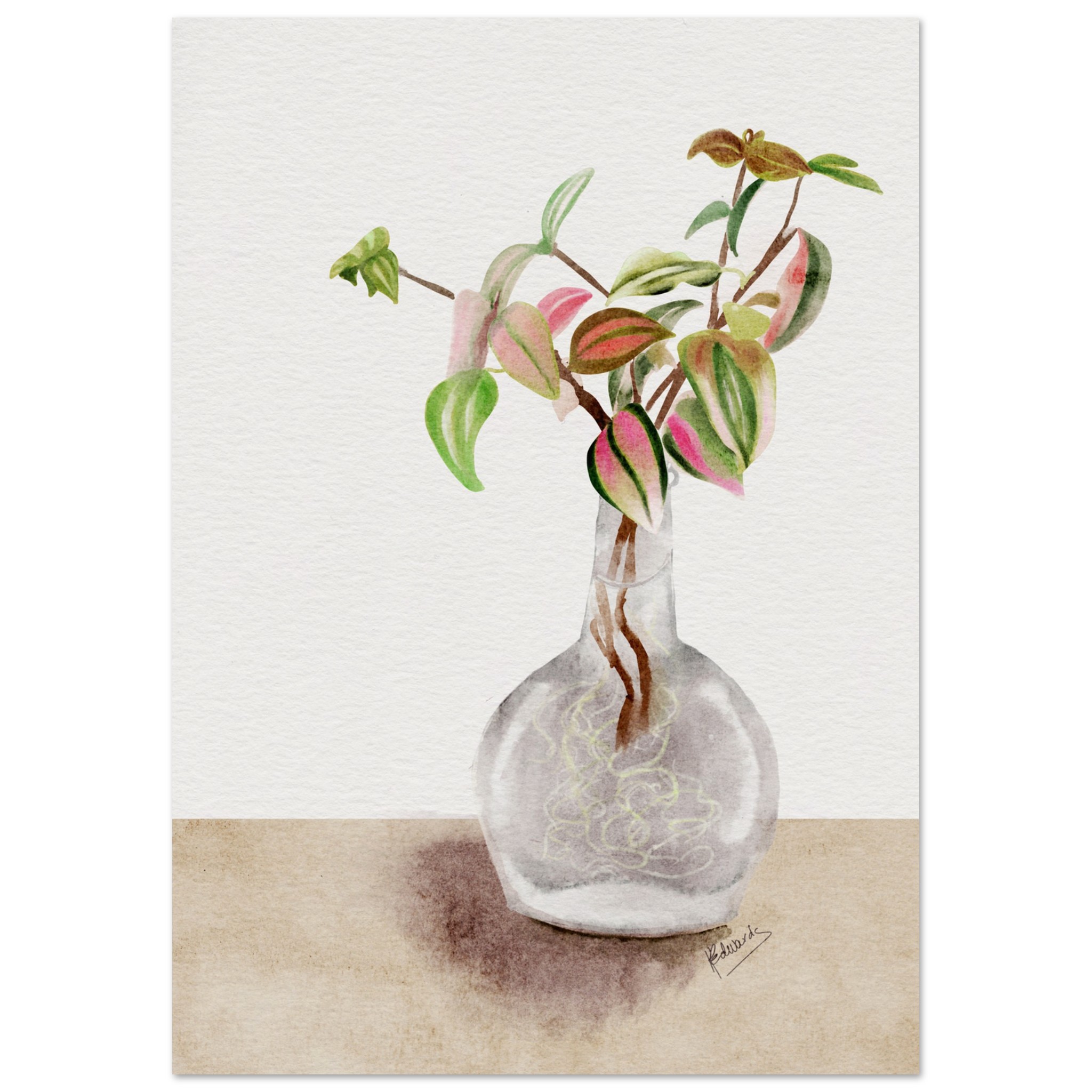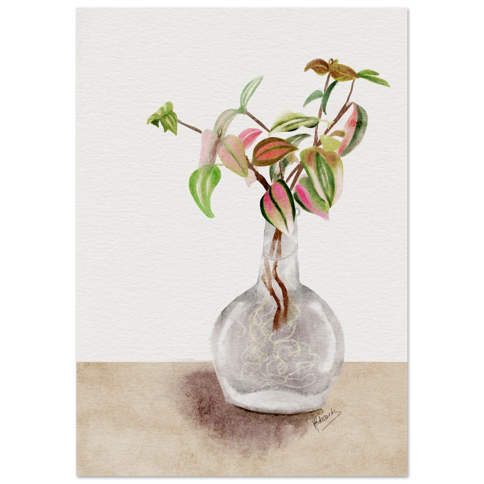 Wandering Dew Watercolour Art Print – Pink Green and White Houseplant in Glass Bottle | Botanical Wall Art by My Sprout Studio